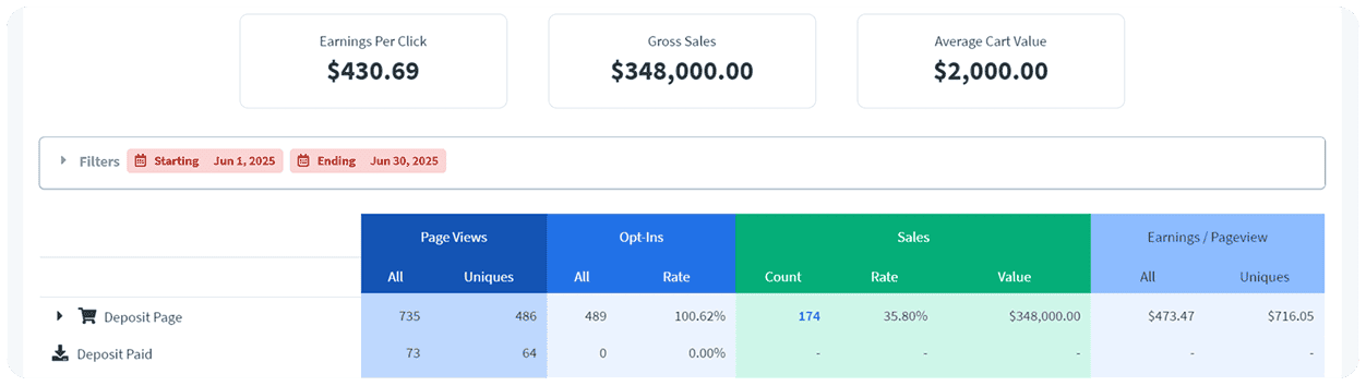 Over $300k in sales in just 30 days with a deposit funnel .